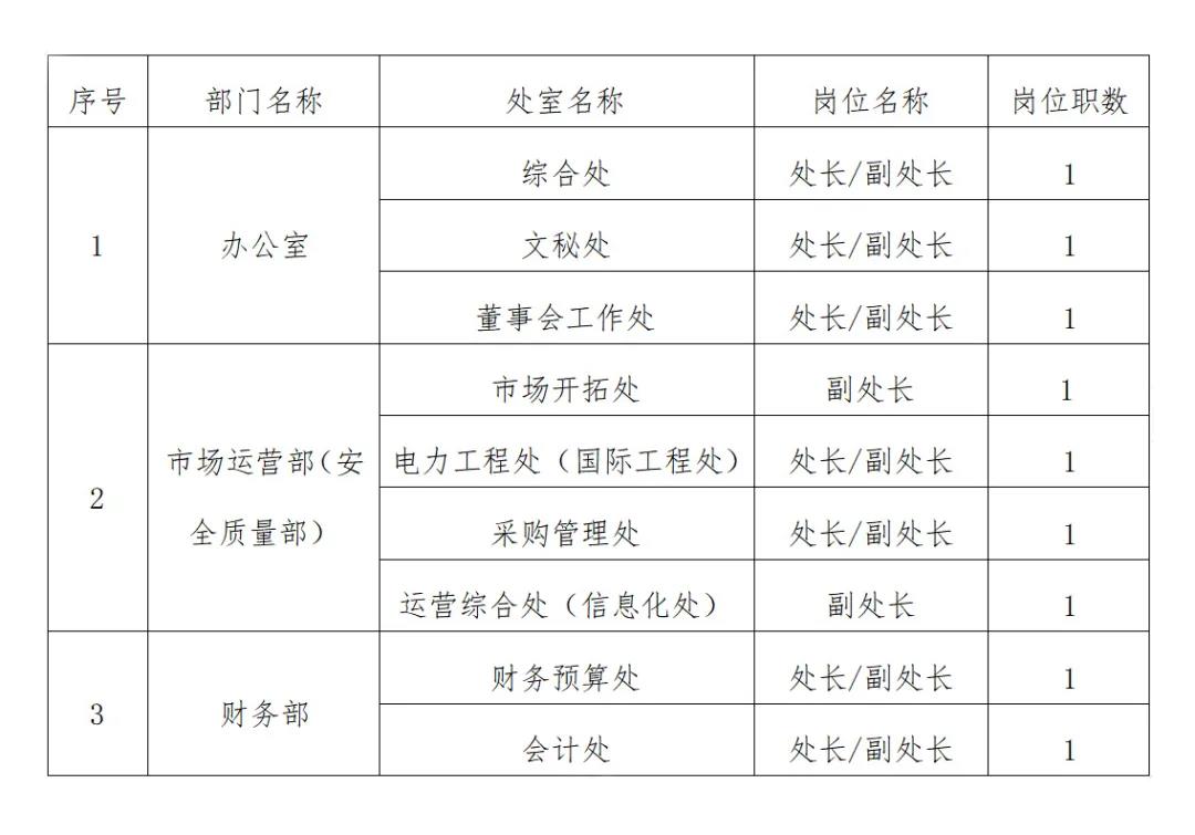 为提升集团整体管理水平,强化集团总部管理职能,建立择优、竞争、充满活力的选人用人机制,经研究决定,集团总部处室负责人空缺岗位面向集团内部进行公开招聘,现将有关事项公告如下: